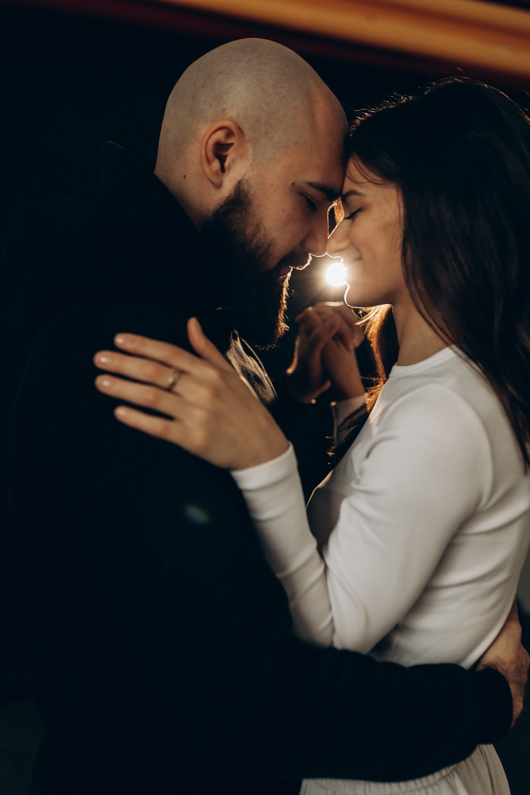 Пара стоит напротив окна держатся за руки смотрят друг на друга взаимодействуют, целуются