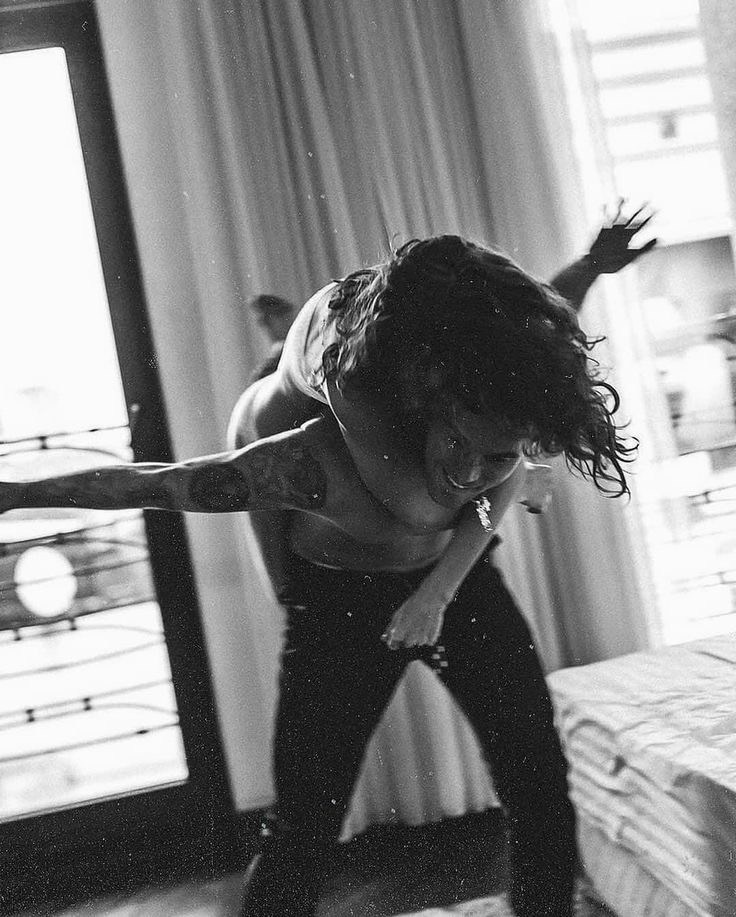 Пара танцует на матрасе, на полу.